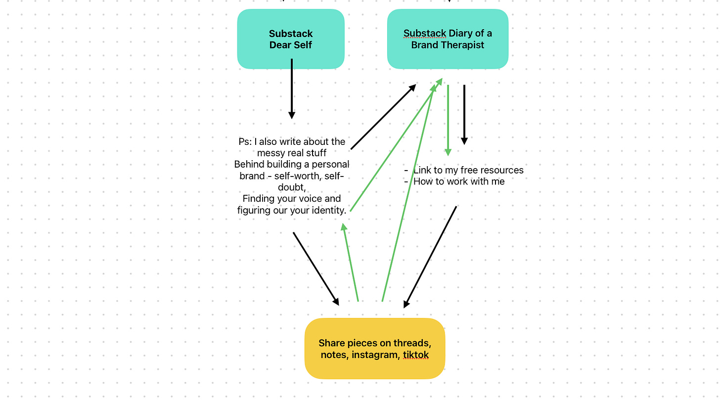 I already have a small audience in Dear Self, so what I did was to add a p.s. at the end of each essay letting people know that I also have this other newsletter, and if they are interested in building their brand and business, they will enjoy this one too.